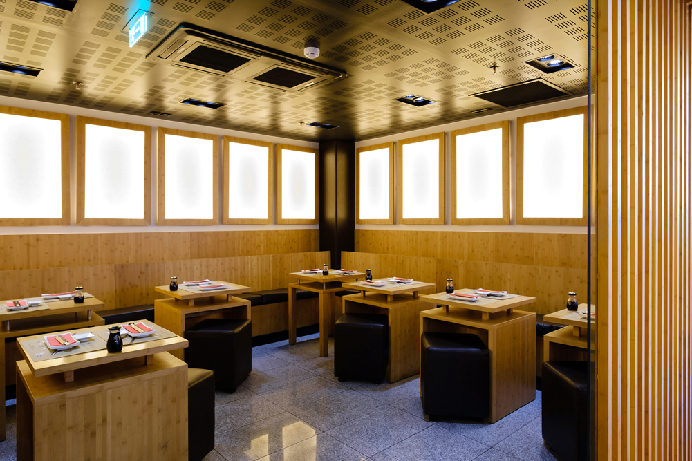 Situado no Centro Comercial Oeiras Parque, o segundo restaurante da marca SushiCafé ocupa um espaço de arquitectura surpreendente com as linhas ondulares em tons de madeira que preenchem toda a atmosfera. Um espaço único e acolhedor onde se destaca o conforto e a privacidade.
