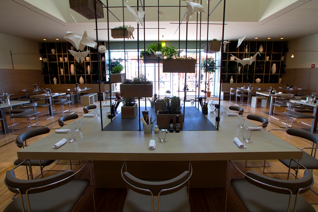 Situado no Centro Comercial Oeiras Parque, o segundo restaurante da marca SushiCafé ocupa um espaço de arquitectura surpreendente com as linhas ondulares em tons de madeira que preenchem toda a atmosfera. Um espaço único e acolhedor onde se destaca o conforto e a privacidade.